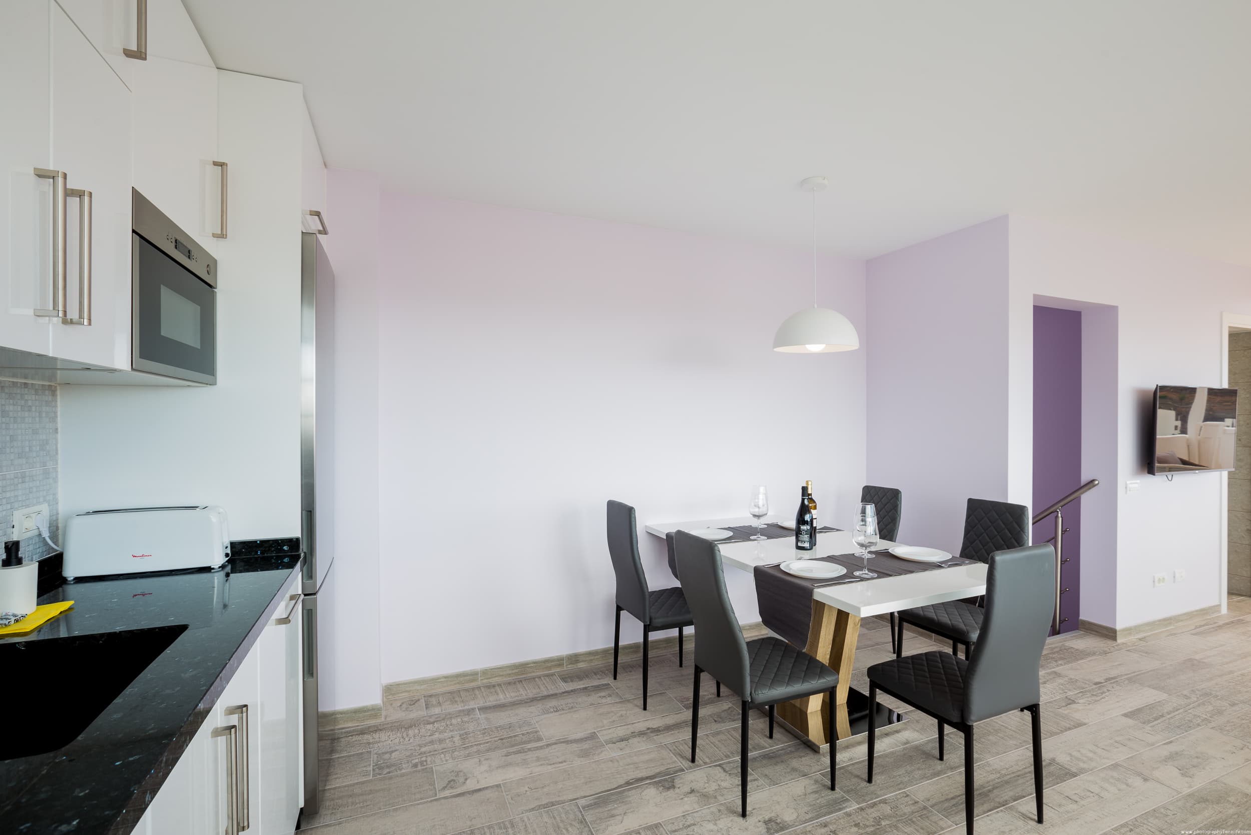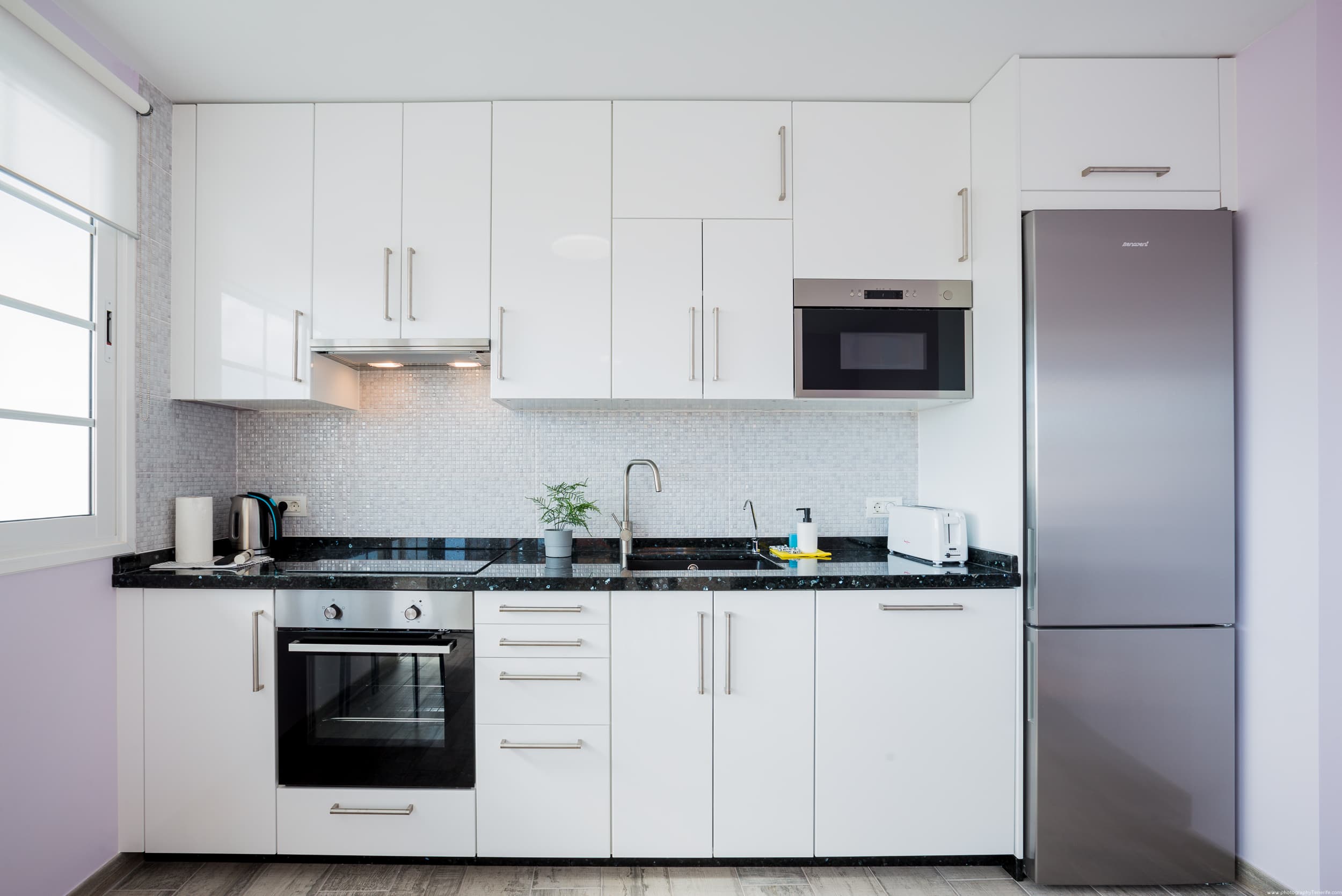 The apartments have: 3 bedrooms, 2 bathrooms, a small living room, a large living room combined with a large kitchen, a terrace for relaxation with a magnificent view of the ocean. The complex has a lovely swimming pool with sun loungers.