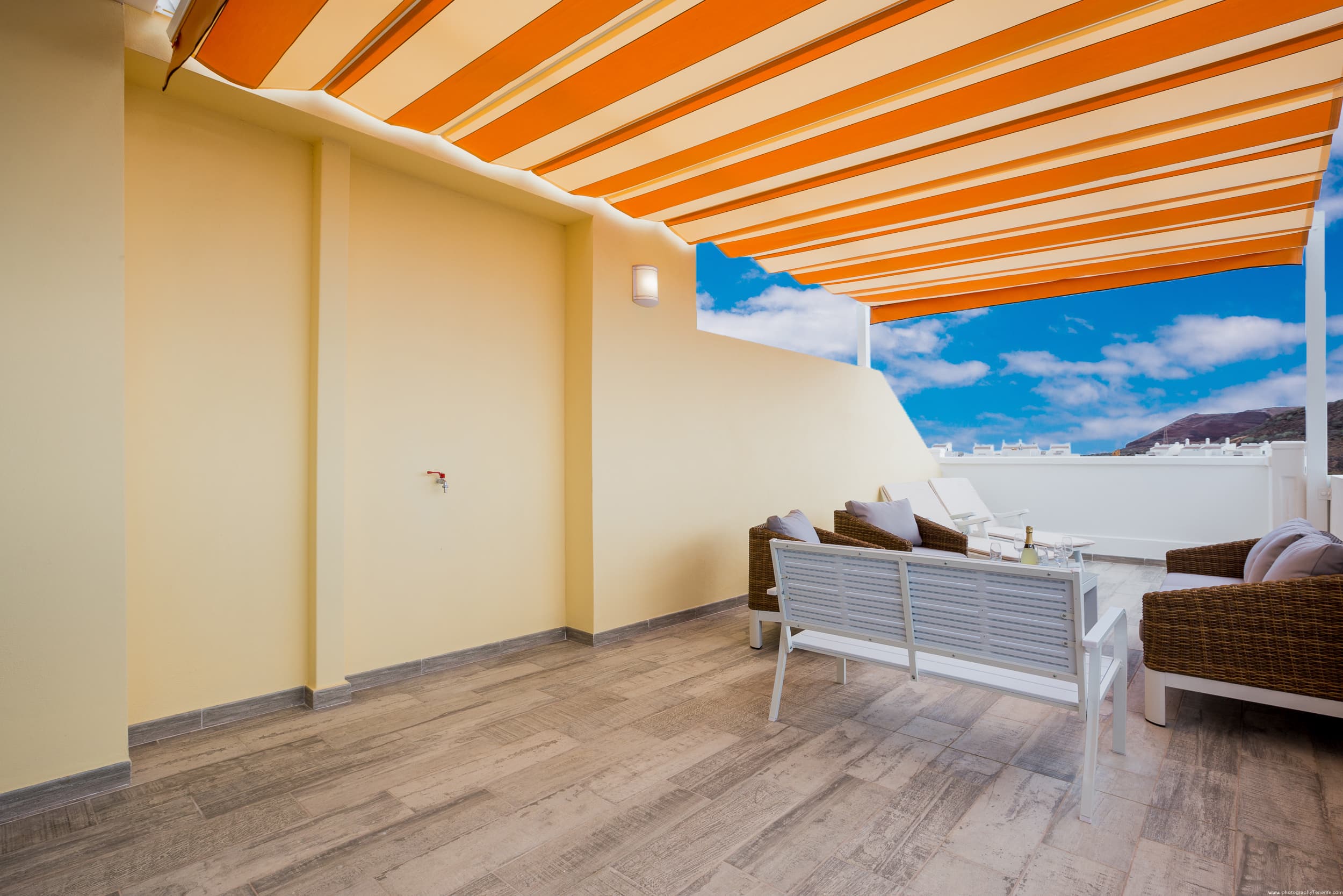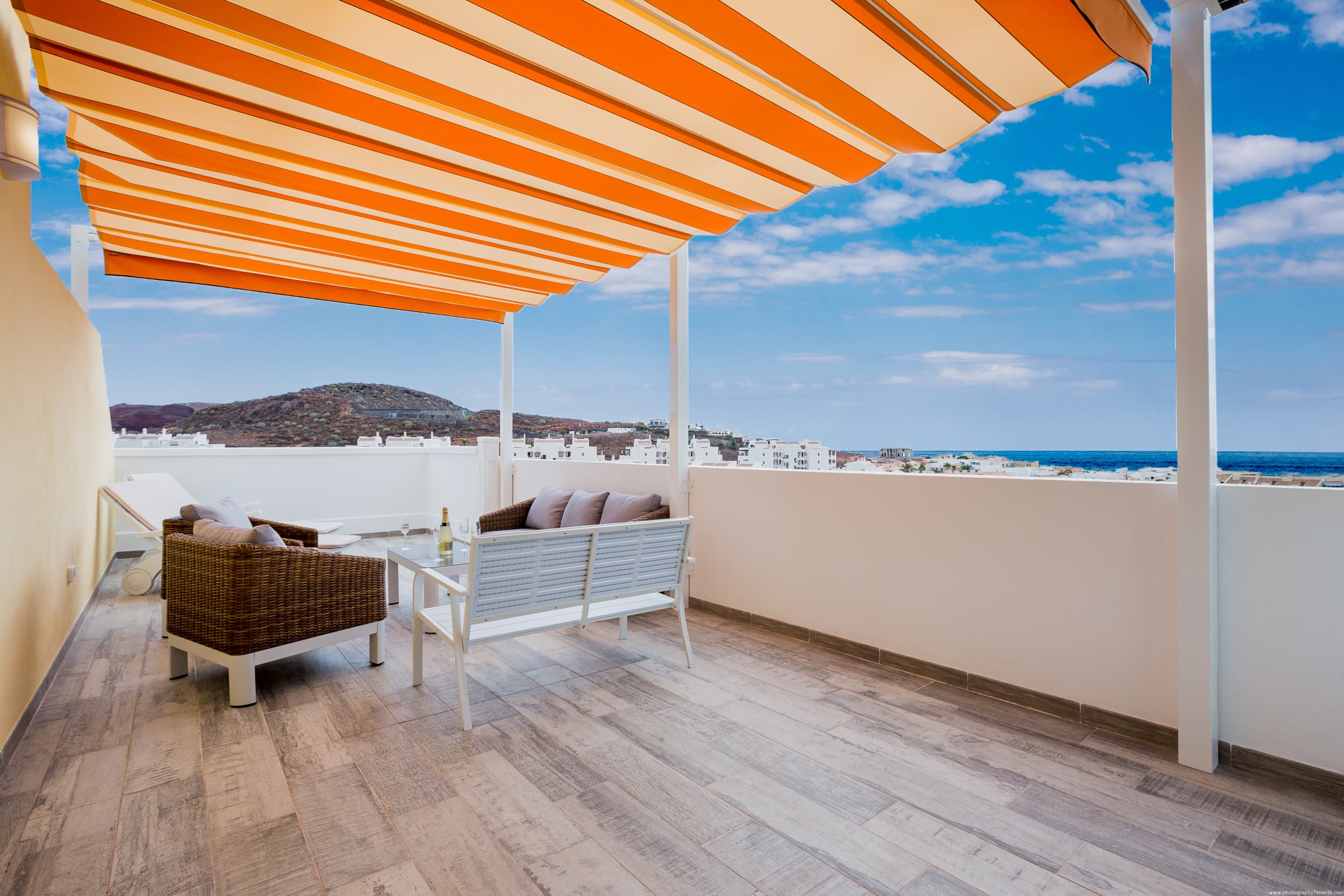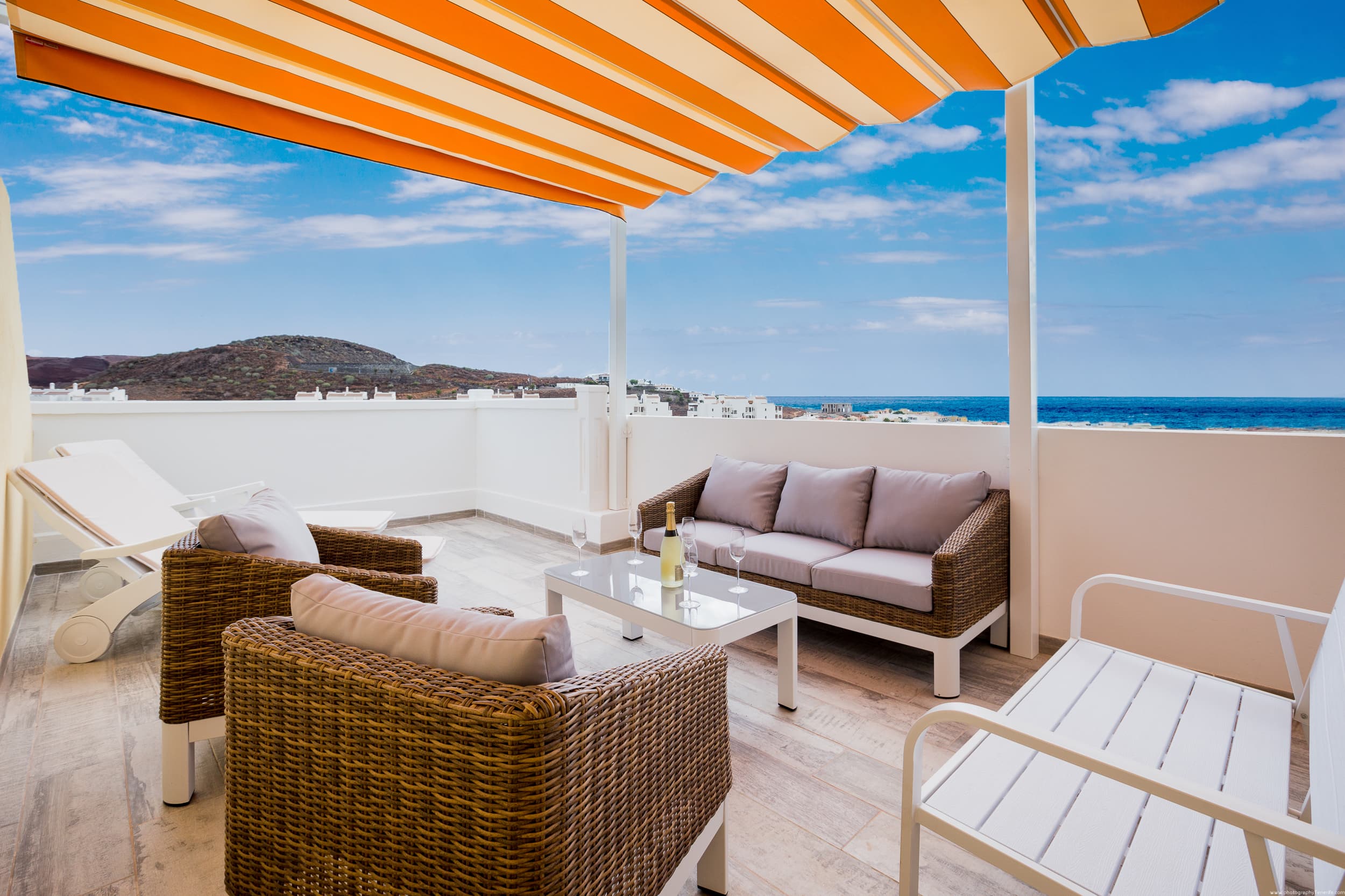 On the large terrace you can dine, relax on the sun loungers, and spend unforgettable evenings with a glass of wine, watching the most beautiful sunset in Tenerife.