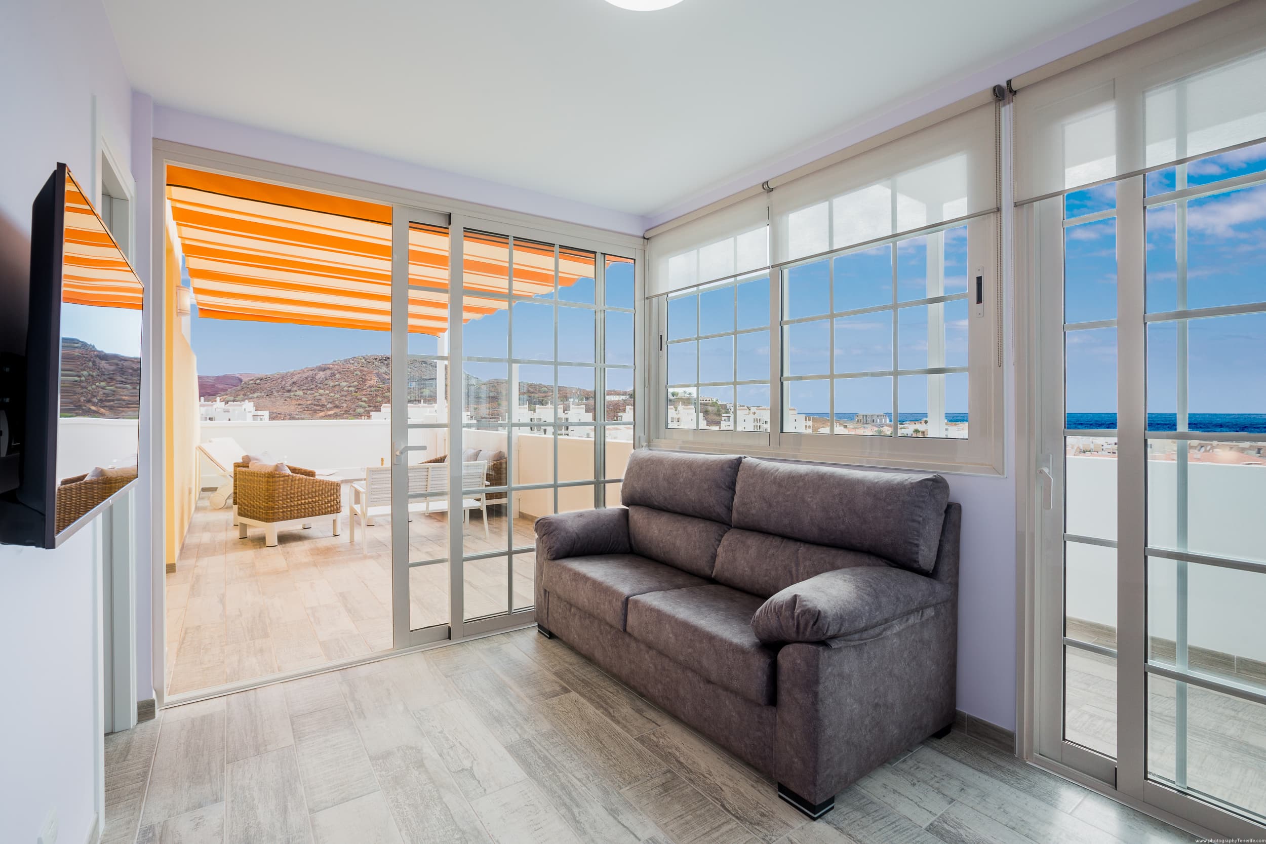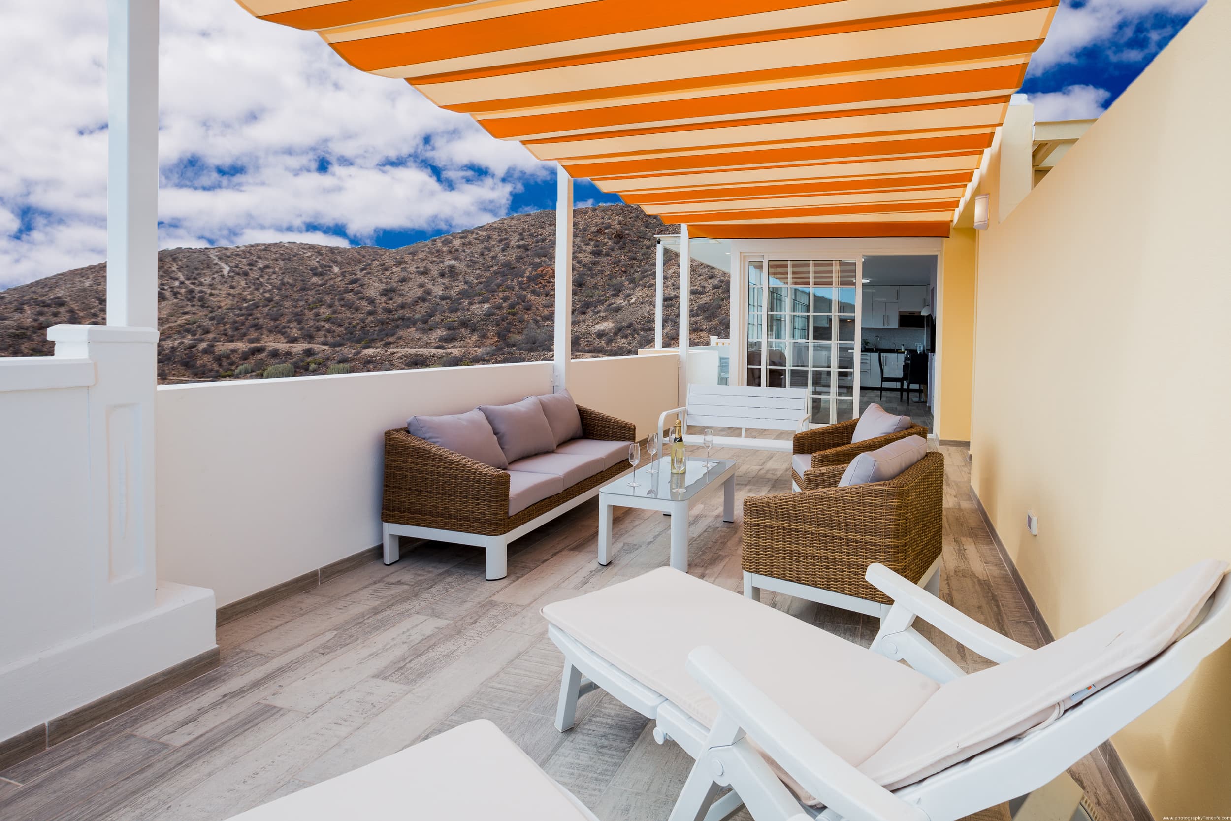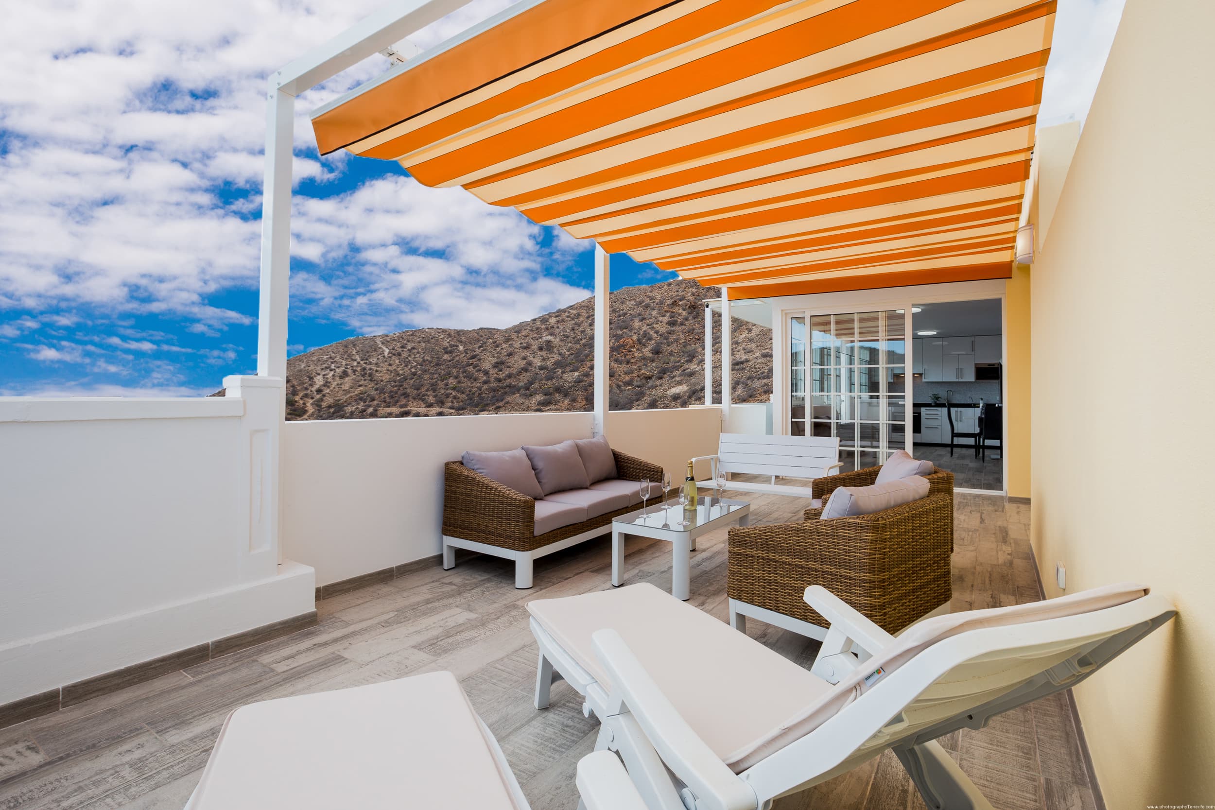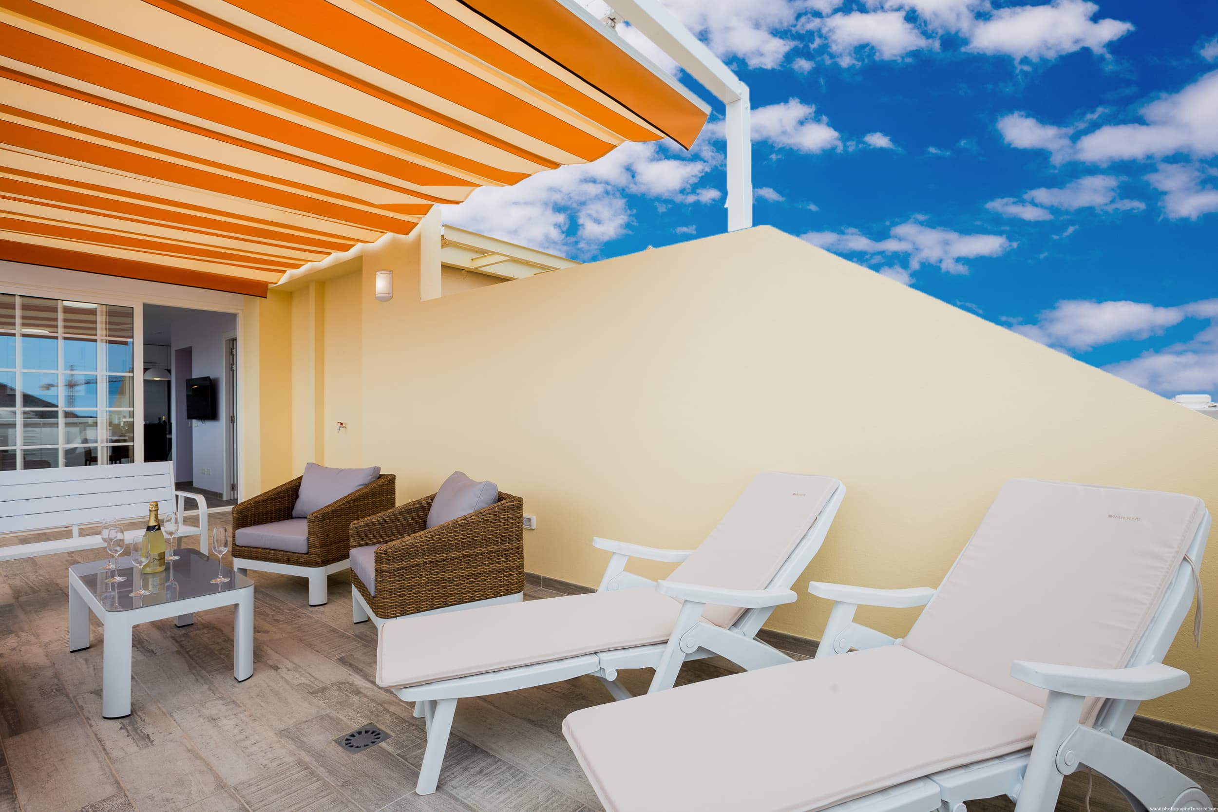 On the large terrace you can dine, relax on the sun loungers, and spend unforgettable evenings with a glass of wine, watching the most beautiful sunset in Tenerife.