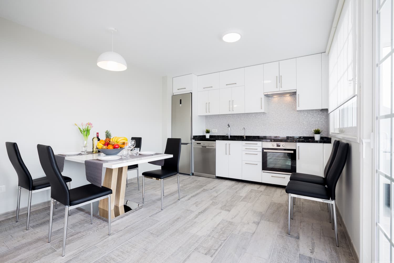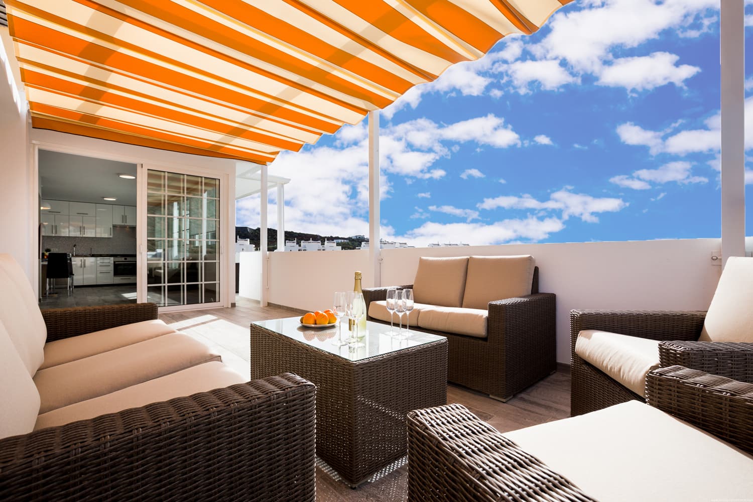 The apartments have: 3 bedrooms, 2 bathrooms, a small living room, a large living room combined with a large kitchen, a terrace for relaxation with a magnificent view of the ocean. The complex has a lovely swimming pool with sun loungers.